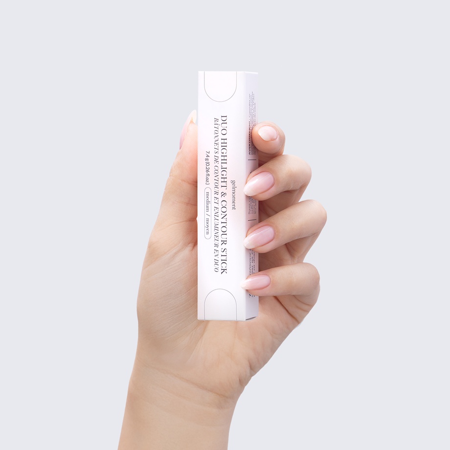 Our creamy contour & highlight duo are formulated to be lightweight and easily blendable using our “gelmoment brush”. Plus, our dual-sided applicator stick makes it easier than ever to use these complementary products together. Simply begin with the contour shade to add beautifully defined dimension to your face, then highlight to your heart’s content for a glowing finish.